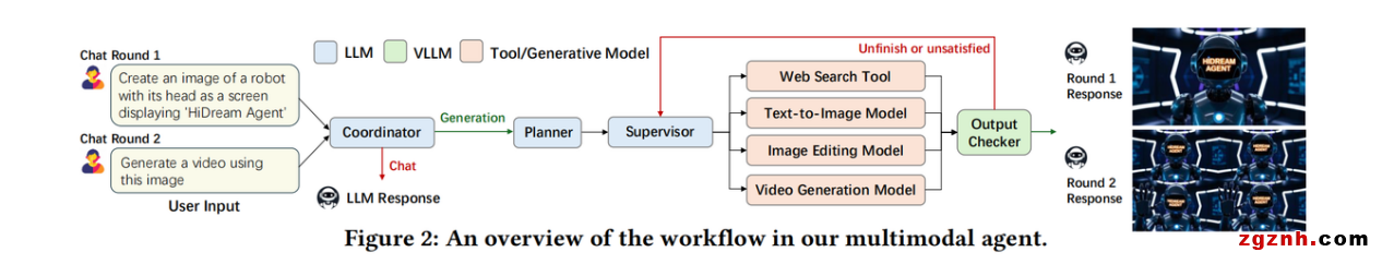智象未来获奖的“灵感智能体”(Chat Generation)统一多模态智能体,以革命性技术将复杂的视觉内容创作,转化为直观的对话体验。其核心优势在于突破碎片化多模态技术工具的局限,在单一界面内无缝整合了文本生成图像、指令式图像编辑及文本/图像生成视频功能,有效解决了跨模态语义对齐的行业难题。该技术基于170亿参数量的HiDream-I1模型,依托稀疏扩散Transformer(DiT)结构与动态混合专家(MoE)设计,在HPS、Geneval等国际权威基准测试中表现优异。而针对指令式图像编辑任务,团队通过上下文视觉条件优化HiDream-I1模型,使其能够实现精准的图像修改效果。