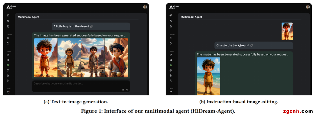 该智能体开创了可及性、交互式视觉叙事和多模态生成AI中协作内容创作的新方式,通过将生成和编辑融合于一个对话驱动的体验中,降低了高质量视觉内容创作的门槛,并显著缩短了迭代周期,实现从想法到优质产出的 “一次会话” 创意循环。目前,这一技术原型已成功迭代应用于智象未来旗舰产品vivago.ai的对话生成功能中,为用户提供更自然、个性化的多模态对话交互体验。