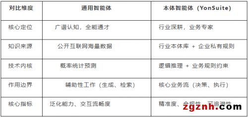 通用智能体(如 GPT 系列、Claude 等)的核心价值在于降低认知门槛。它们以“广泛适配”为目标,擅长信息检索、文本润色与基础对话。然而,面对企业复杂的业务流程(如 MRP 运算、多准则财务合并),通用智能体往往只能提供“看似合理但难以直接执行”的表层建议。