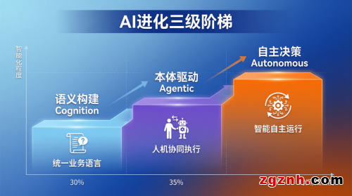 第二级:本体驱动(Agentic)实现“人机协同”。智能体嵌入核心流程,自动执行“发票识别”“缺货预警”等任务,从单纯辅助走向流程内嵌与部分自动化。
