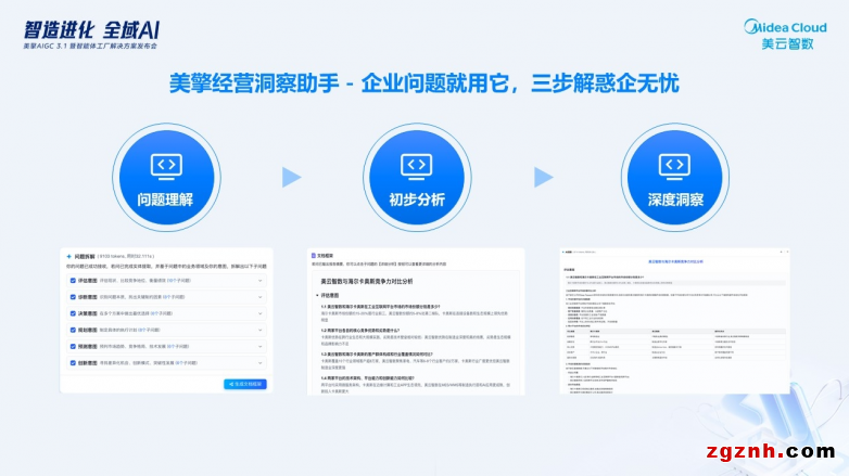 美擎经营洞察助手:用“数据看板+知识图谱”拆解经营问题,3步生成可落地的提效建议(如“库存周转率提升15%”)。